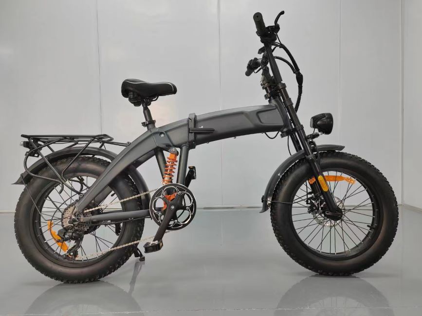 A Stylish Electric Folding Bike with hidden battery, disc brakes, front suspension and oversized 20″ x 4 fat tires to offer great flexibility, good traction even on snow and sand, great comfort when traveling around the city.